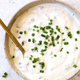 - Heavy cream and crรจme fraiche:ย are an alternate creamy base to sour cream and mayo.ย Whisk ยฝ cup heavy cream until thickened, but not to soft peaks. Fold in ยฝ up crรจme fraiche or sour cream along with the rest of the ingredients. ย Refrigerate for 30 to 60 minutes before using.