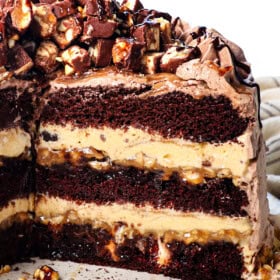 This Snickers-inspired ice cream cake is rich, creamy, chocolatey, and packed with the sweet-salty goodness of peanut butter caramel in every bite. It may look impressive, but the recipe is straightforward, tested, and foolproof, complete with step-by-step photos, expert tips, tricks, and easy variations. Best of all, itโs topped with stabilized chocolate whipped cream, so it freezes beautifully for weeks without losing its luscious textureโunlike other recipes that fall short, literally.