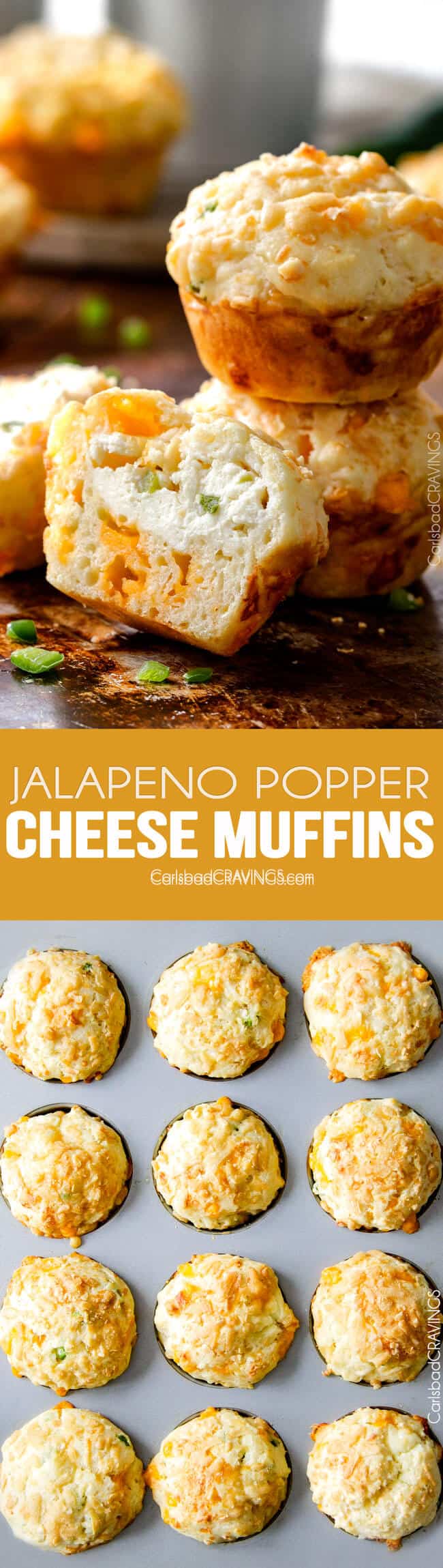 Easyย moist, rich, bold Jalapeno Popper Cheese Muffins.ย ย Arguably some of the most addictively delicious savory muffins you will ever devour.