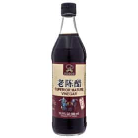 - Chinese black vinegar:ย (often known in its most popular form, Chinkiang or Zhenjiangย vinegar), is dark, complex and fruity with umami rich undertones.ย It is often compared to balsamic although it is less sweet, and ultimately so unique that I hesitate to even attempt to describe it.ย You should be able to find Chinese Black Vinegar at Asian specialty markets or you may substitute with half balsamic vinegar and half rice vinegar.