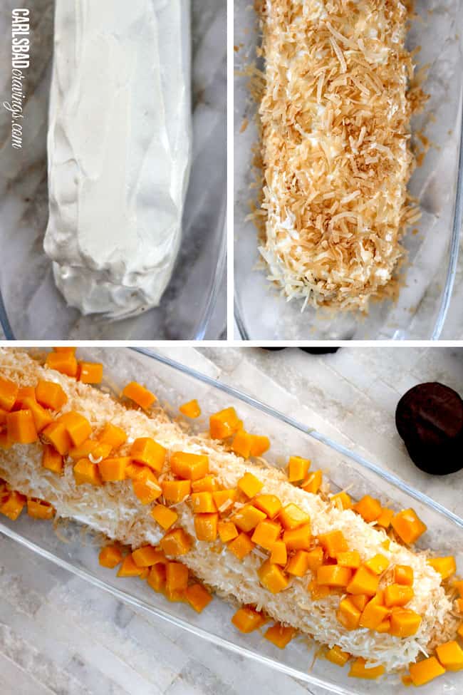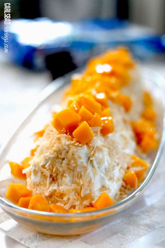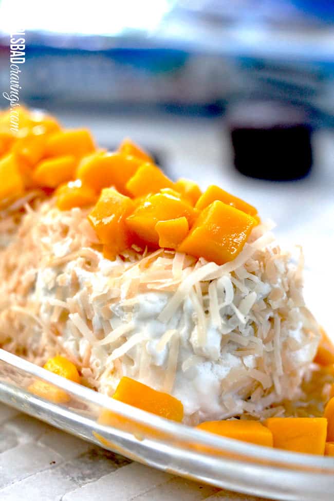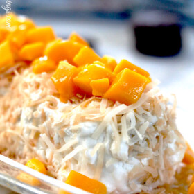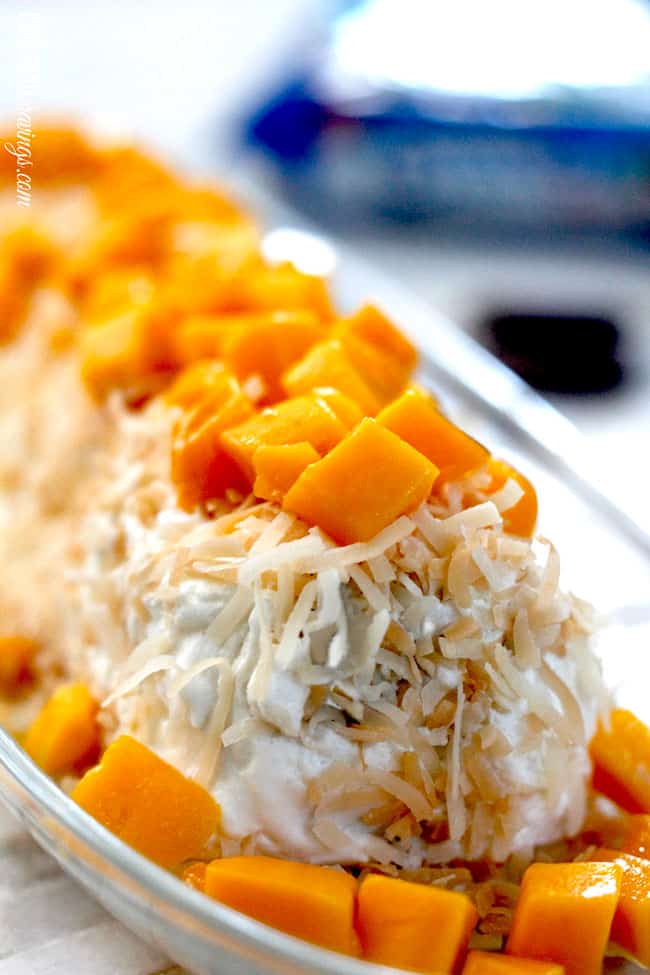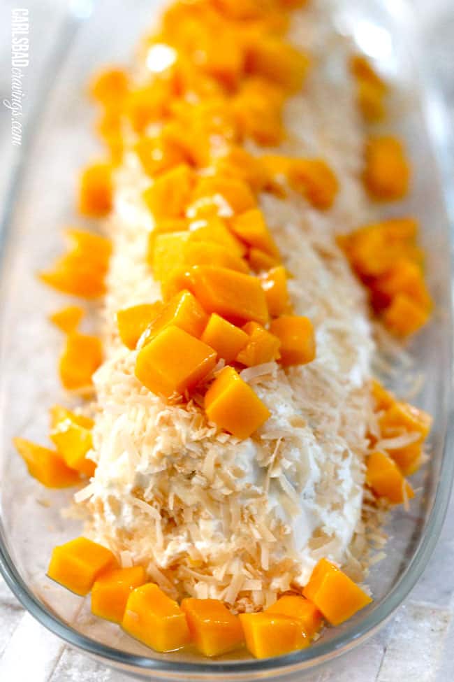 - Top with coconut.ย Sprinkle toasted coconut all over cream and gently pat into the cream.ย Top with mangos bathed in lime juice and a touch of sugar.ย ย And if you are intimidated by cutting mangos โ donโt be, just check out my How to Cut A Mango Post that teaches everything you could ever want to know about mangos!