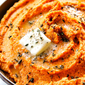 - For Garlic Mashed Sweet Potatoes: replace the garlic powder with sautรฉed or roasted garlic. You can add some fresh herbs to the garlic while sautรฉing for an extra flavor boost.