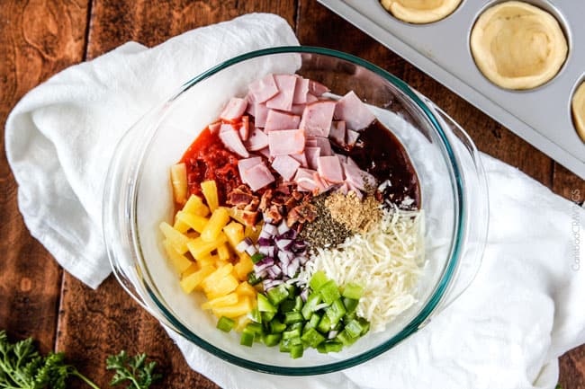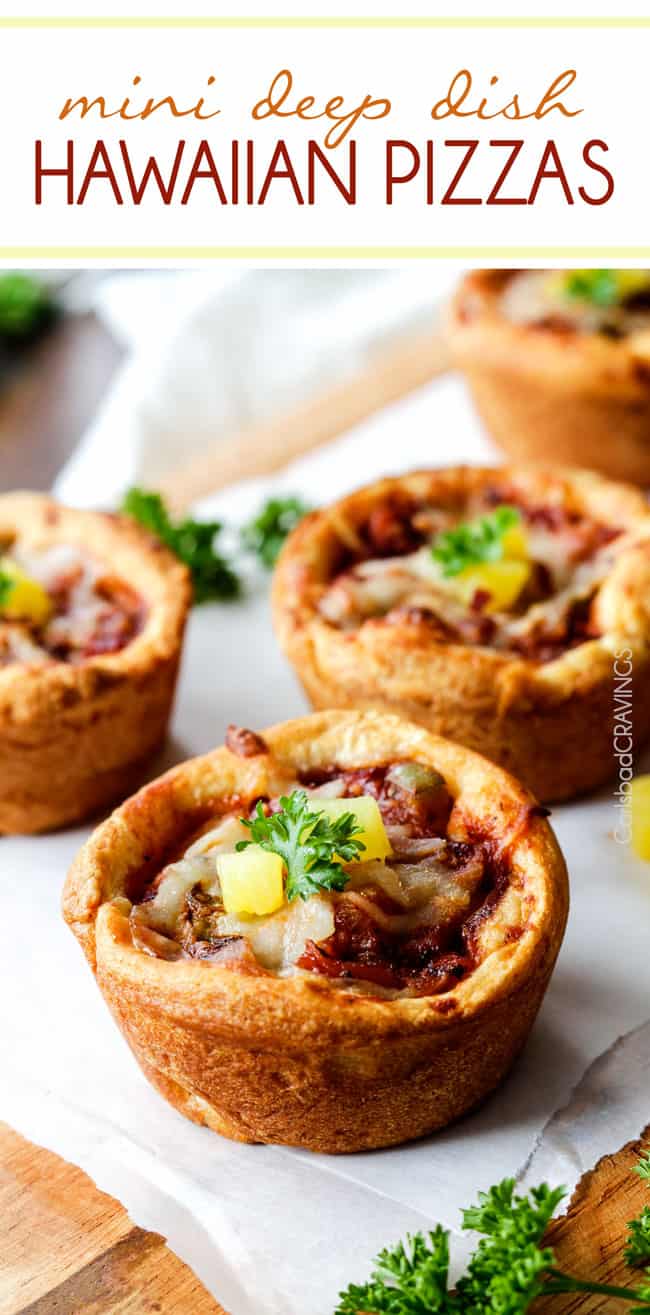 So when I decided to make mini deep dish pizzas, I knew I wanted to make Hawaiian pizzas. ย But really, this mini deep dish pizza making method can be used for any toppings, any sauces, anything you can dream up!