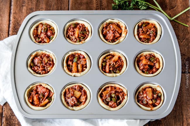 - Generously spray the muffin cups with non-stick spray, otherwise your Hawaiian pizza bites will stick to the pan.