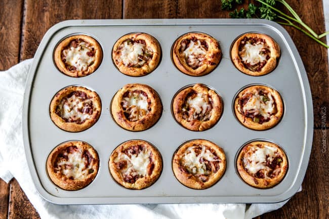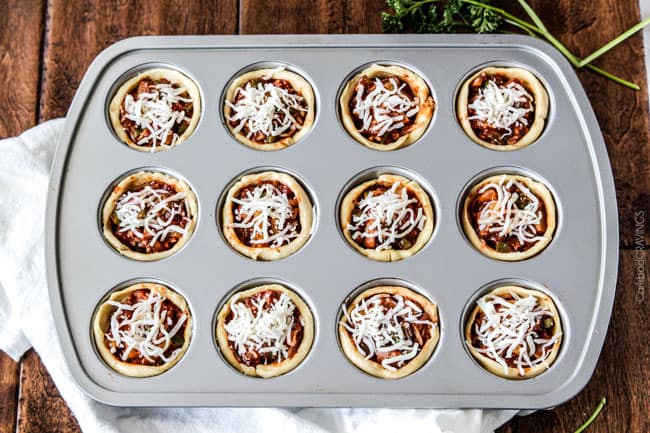 - Do not overfill the muffin cups, otherwise your mini pizzas will overflow in the oven.