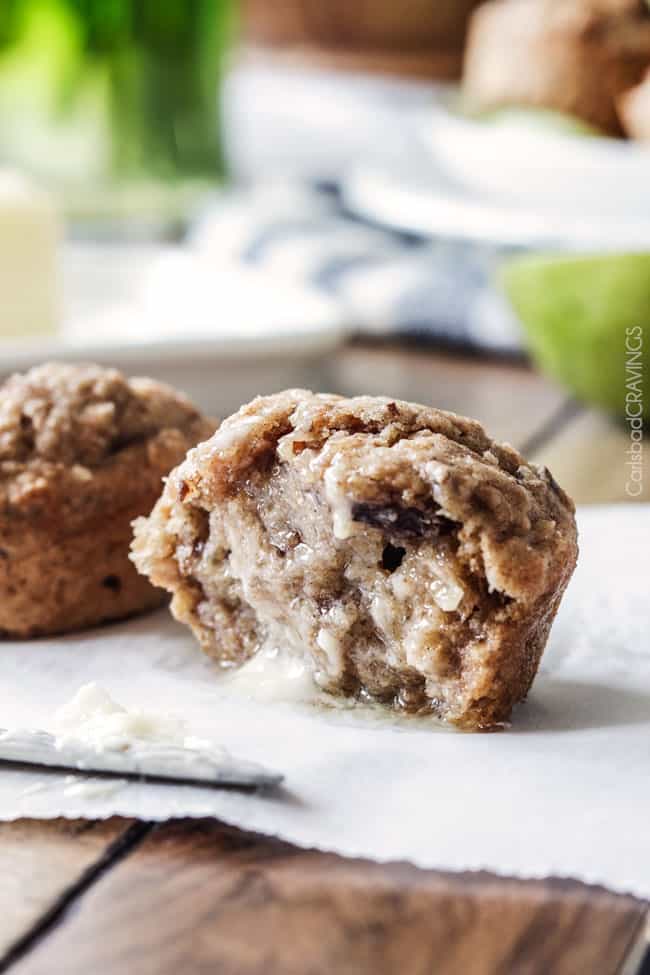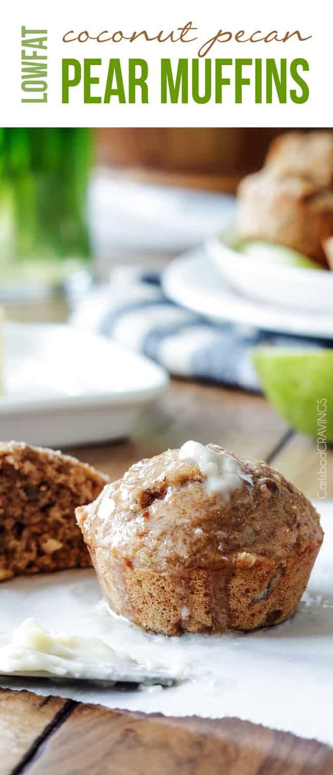 And if you want to make these uber moist pear infused, coconut, pecan bursting Pear Muffins a little less lowfat (although delish just the way they are), smother with butter and even the boys will come running.