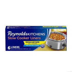 The springform pan needs to be waterproofed so water from the water bath doesnโt seep through the bottom of the springform pan and soak into the cheesecake. The common practice of surrounding the pan with foil, however, is not foolproof.ย Instead, use a slow cooker liner for a foolproof cheesecake every time!