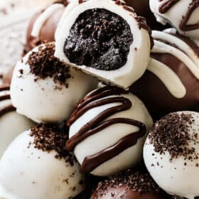 I absolutely adore Oreo Truffles.ย The rich, chocolaty truffle center with a blanket of snappy chocolate coating. Itโs the perfect bite.