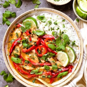 This Chicken Panang Curry tastes better than your favorite restaurant at a fraction of the price but is incredibly easy to make in 30 minutes all in one pot! Itโs lusciously coconut creamy thanks to my secret ingredient, tangy, savory, sweet and salty perfection and will have you joining readers in โwanting to chug the sauce so you can make it at a momentโs notice ๐.