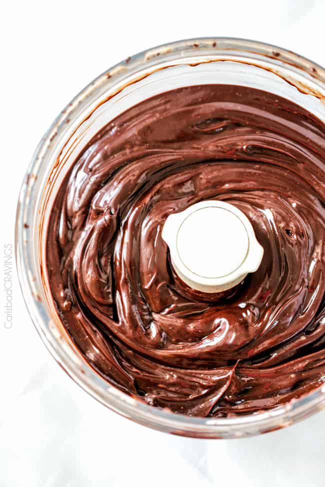 - Chocolate Mousse: Add chocolate to food processor and finely chop. Add vanilla and salt and pulse a few times to combine. Bring 1 cup heavy cream to boil in the microwave or small saucepan. With processor running, gradually pour hot cream through feed tube and process until chocolate is melted and smooth. Transfer mixture to large bowl and cool to room temperature, stirring occasionally (I put mine in the refrigerator to speed the process along.) Once room temperature, whisk in 2 whole eggs.
