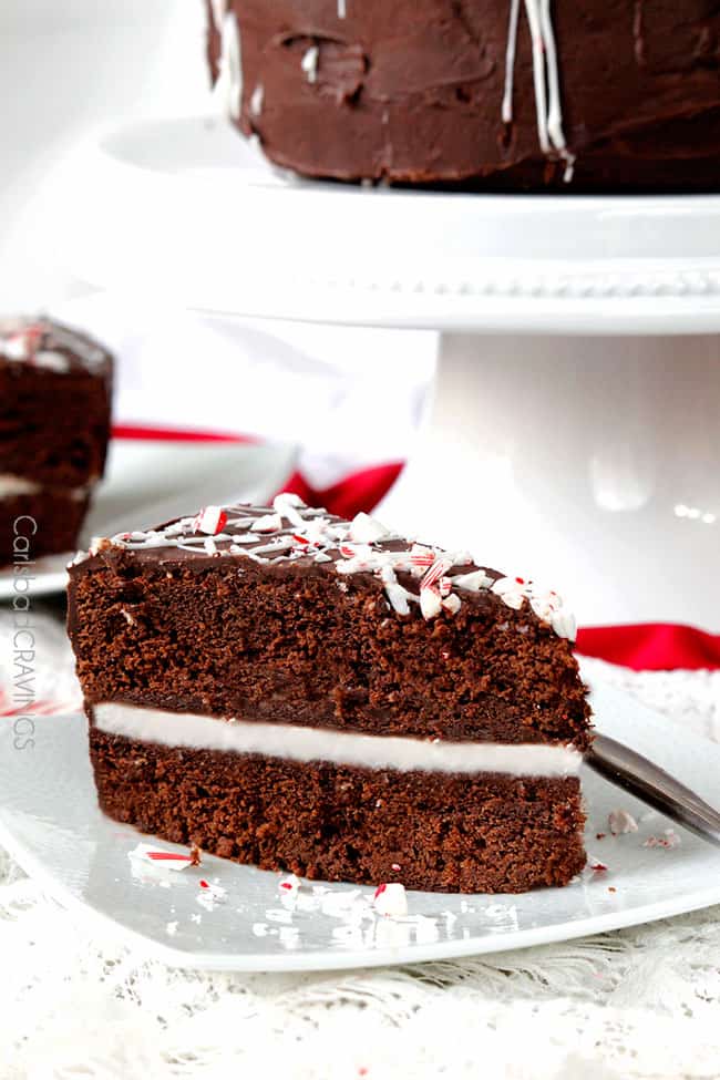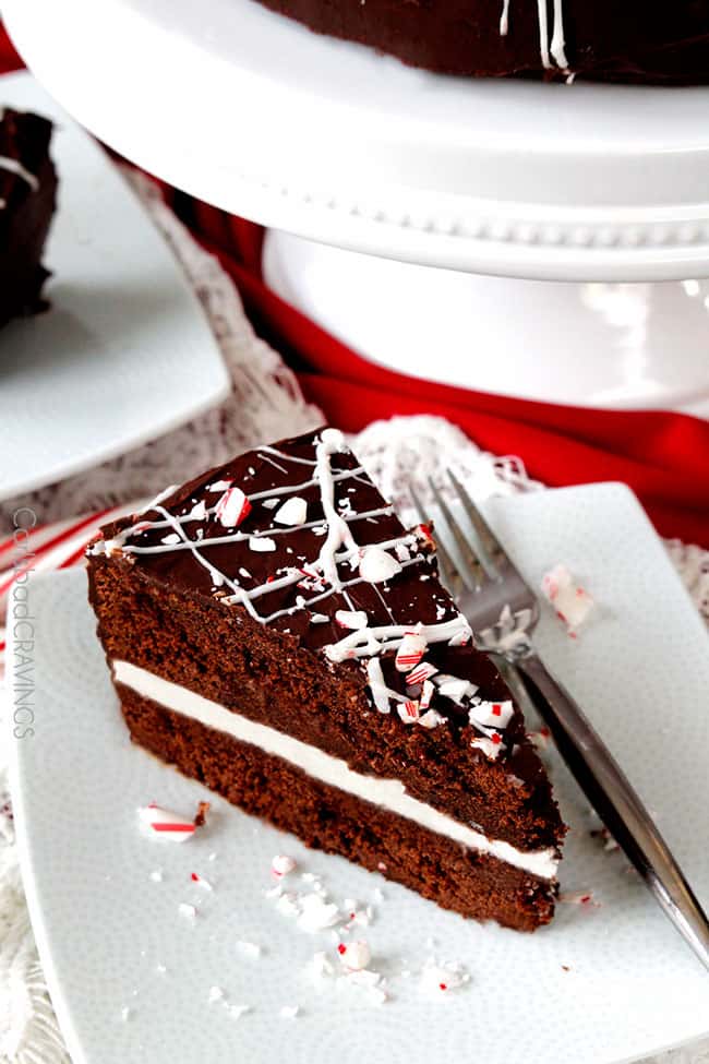 To serve, I LOVE to microwave the individual slices of Chocolate Peppermint Cake for 20 seconds or so for warm chocolaty cake, oozing peppermint frosting and melty chocolate ganache. ย Thatโs all I need to be filled with the Christmas spirit. ย I should just start the season off with this Peppermint Chocolate Cake next year. ย Done and done. ย Merry Christmas!
