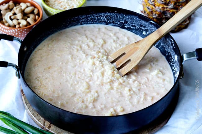 - Cook, covered for approximately 20 minutes while the rice drinks in all that tropical goodness. ย Just think of all that flavor ingestion!