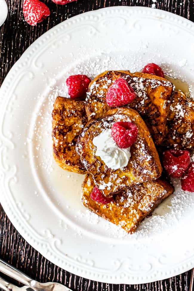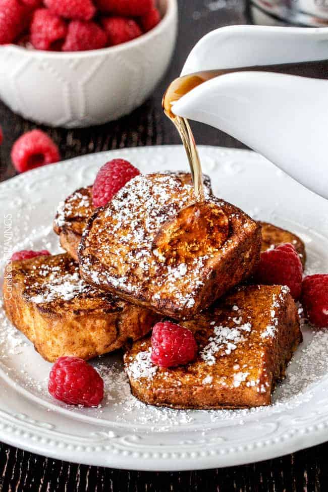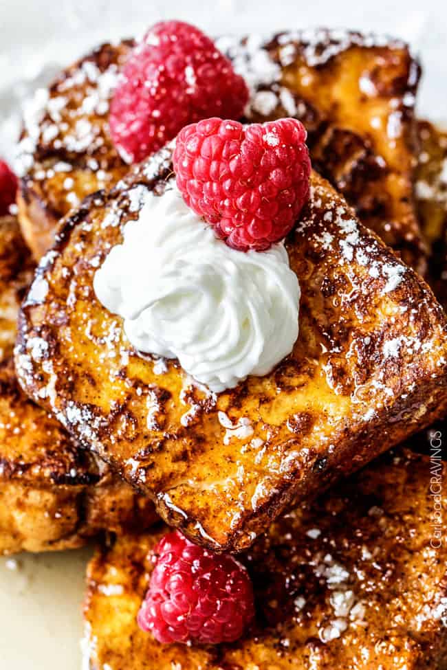 However, if you want to prep a big batch to enjoy throughout the week you can certainly do so! Make the french toast as instructed, then let the slices cool on a wire rack. Once completely cooled, seal inside a freezer bag and freeze. You can enjoy the leftovers throughout the week!