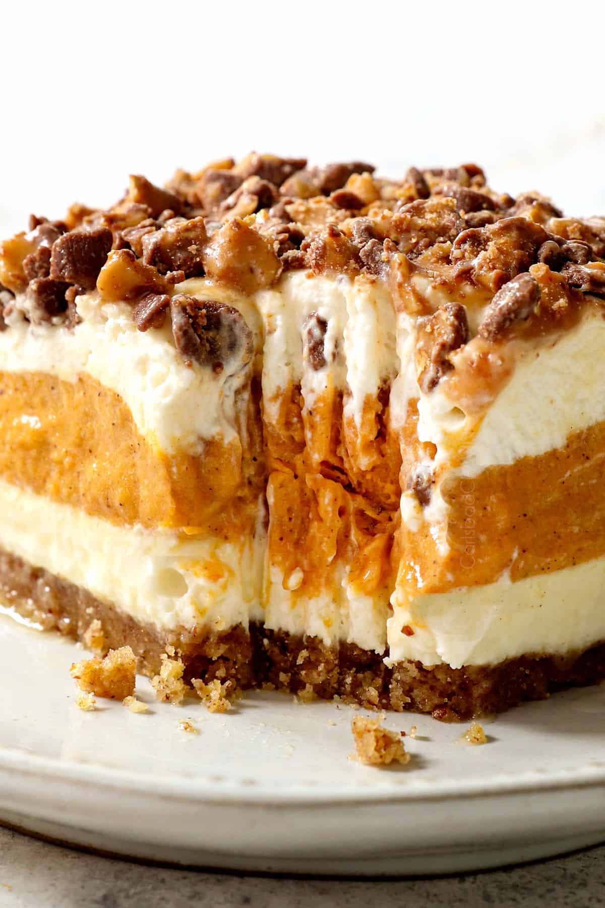 - Once the pumpkin delight is firm enough, slice and serve!ย Itโs okay if it gets messy, it will taste divine!