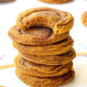 Pumpkin Snickerdoodles can be stored in an airtight container at room temperature for up to 10 days (if they last that long๐).ย Chewiness and pumpkin flavor are even stronger/better after day 2!