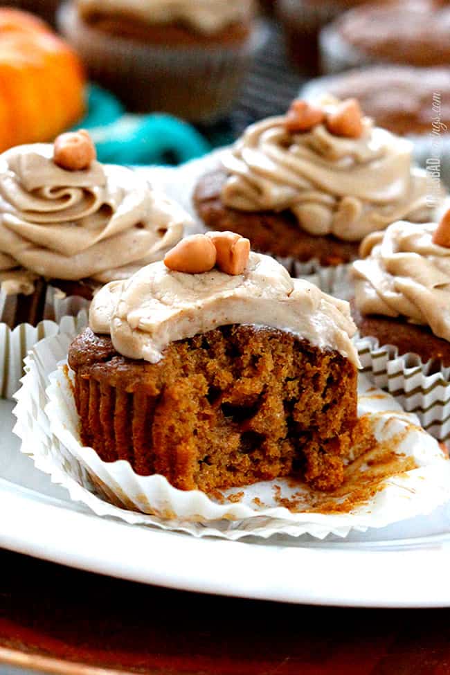 - Frosting.ย ย I love these Pumpkin Cupcakes with Butterscotch Frosting but you can also use your favorite cream cheese frosting or even store bought.
