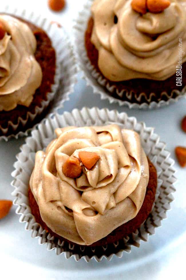 Award winning Pumpkin Spice Cupcakes with Butterscotch Frosting Recipe. ย Mouthwatering delicious no matter how you frost them.