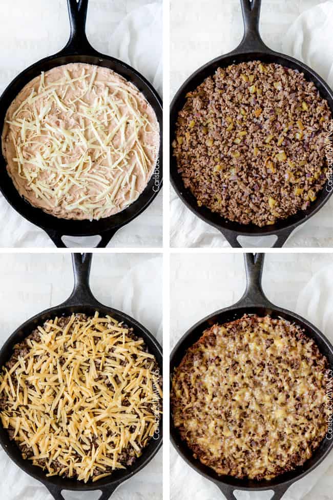 - Mix together the Sour Cream Bean Layer Ingredients and spread in the bottom of a 9โ oven proof skillet or oven pie/casserole dish. Evenly layer with ยฝ cup pepper jack cheese.