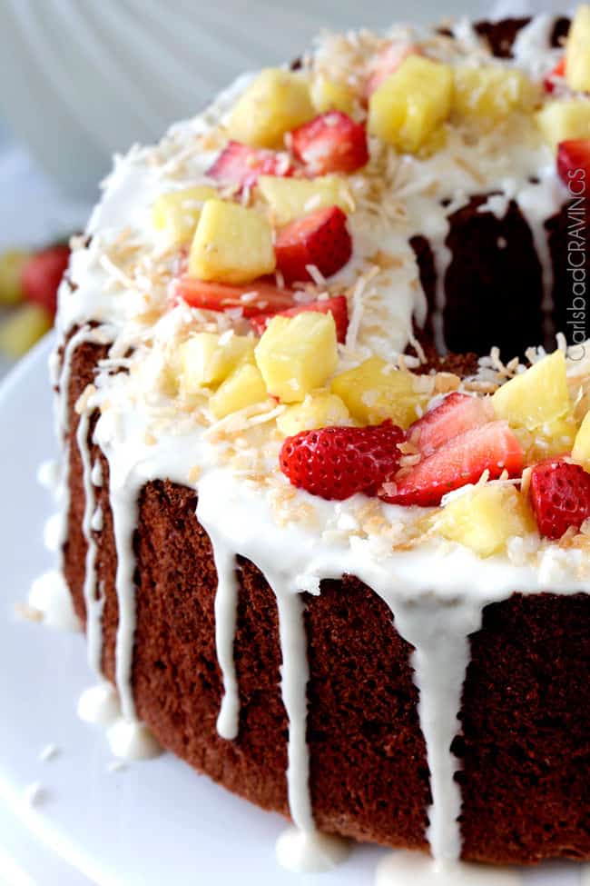 I have to confess that before trying versions of this cake, I had never made an angel food cake before. ย For some reason, I thought that they were temperamental or hard to make. ย I am not sure where I got this misconception because this was one of the easiest cakes I have ever made that looks deceptively fancy as in โ it must have take hours โ when it takes less than 20 minutes! ย Definitely one of my new go-to cakes to impress company.