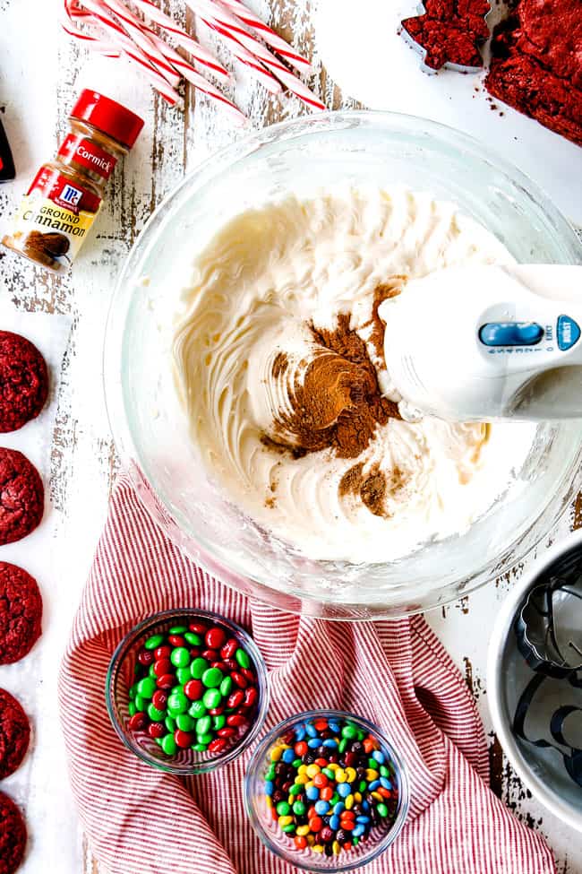 The Red Velvet Brownies also get smothered in the same outrageously delicious Eggnog Frosting, so you can just double the frosting recipe when youโre frosting the Red Velvet Cookies for no extra work! The delectable Eggnog Frosting adds yet another layer of canโt-stop-eating-deliciousness to these already fabulous brownies.