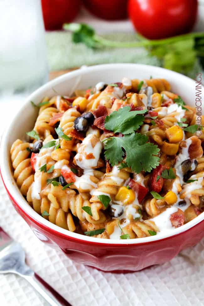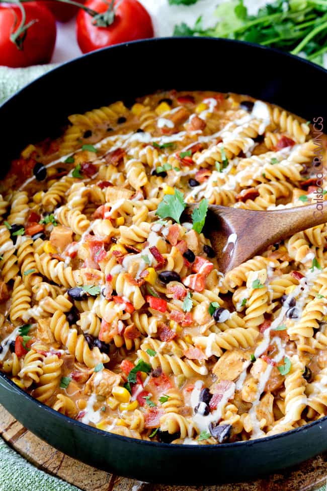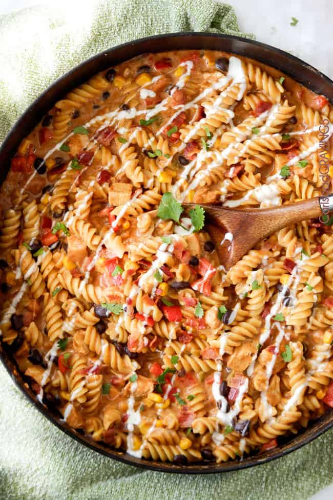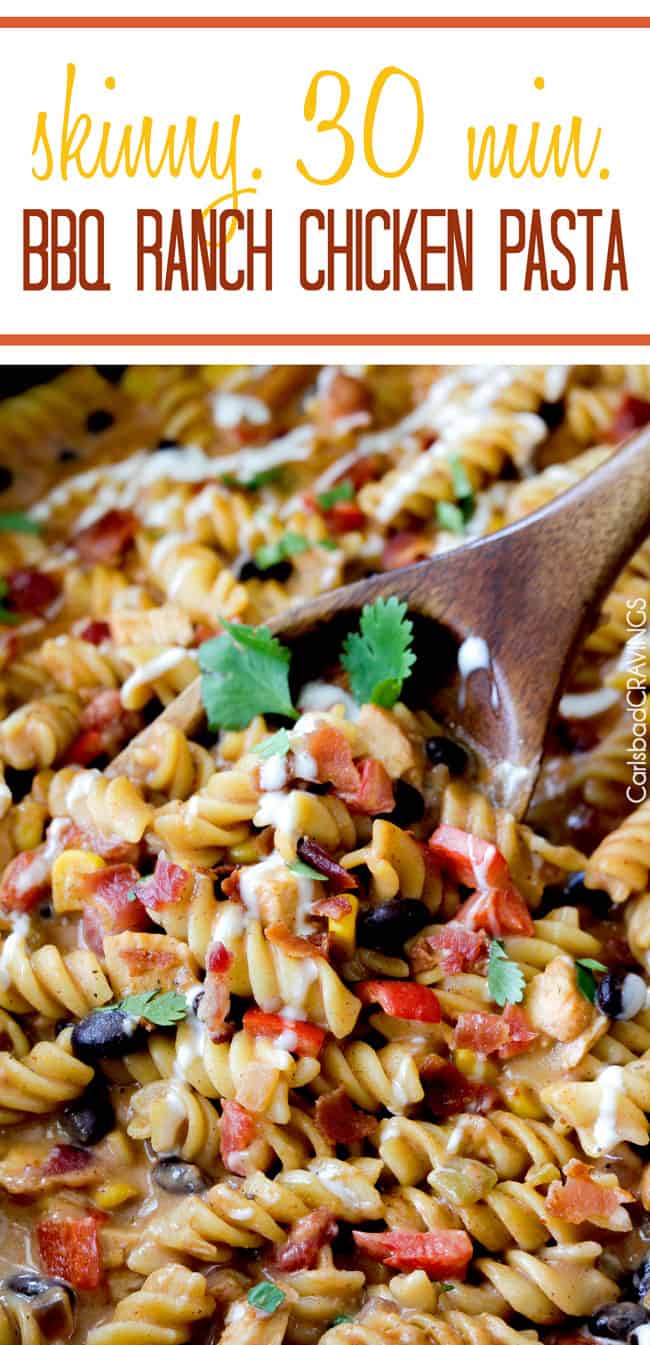 Skinny 30 Minute Santa Fe BBQ Ranch Chicken Pasta. ย Iโll meet you in my dreams.