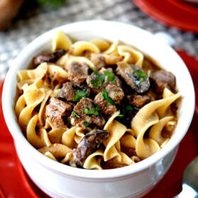 Iโve always loved beef stroganoff and chicken stroganoff, even ordering filet mignon beef stroganoff at a restaurant once (it was a special occasion), so I thought there is no better way to consume an entire bowl full of concentrated deliciousness than turn this classic into irresistiblee Beef Stroganoff Soup!