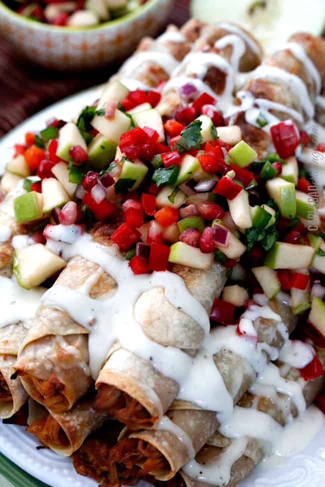 - Serve baked taquitos with extra barbecue sauce or ranch dressing for dipping and top with Pomegranate Apple Salsa.