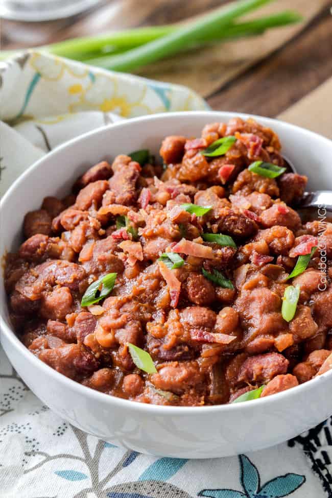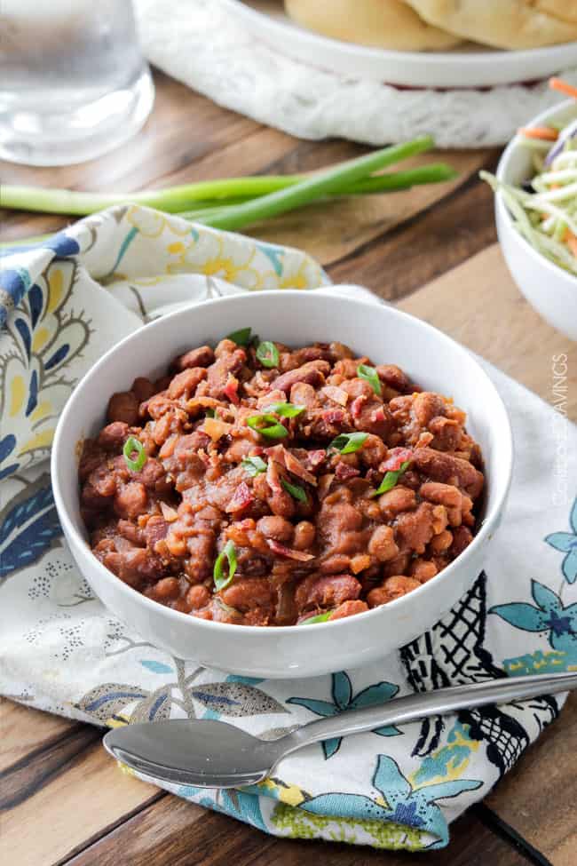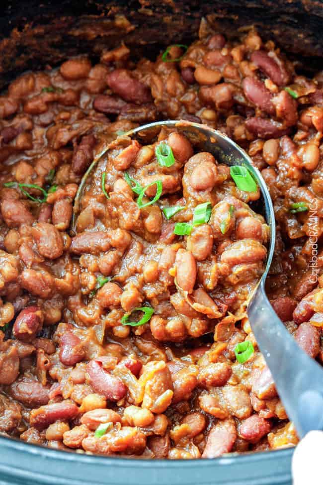 And now its these Slow Cooker Barbecue Baked Beans perfect just the way they are. ย I am crushing hard.