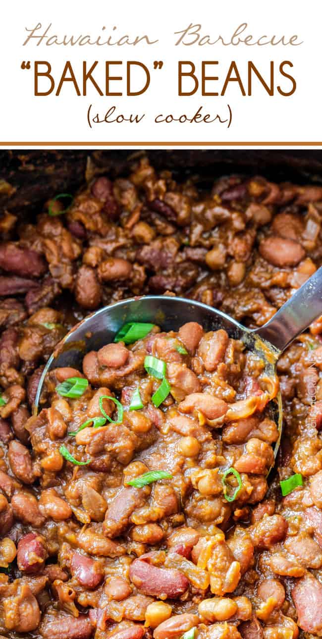 These Hawaiian barbecue Crockpot Baked Beans are the BEST homemade baked beans Iโve ever made. Perfect for potlucks, cookouts, and more!