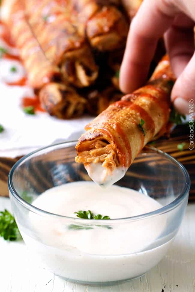 - Dips: As far as dips, I love dunking these chicken taquitos in ranch, blue cheese dressing/sauce or BBQ sauce โ or just eat plain!