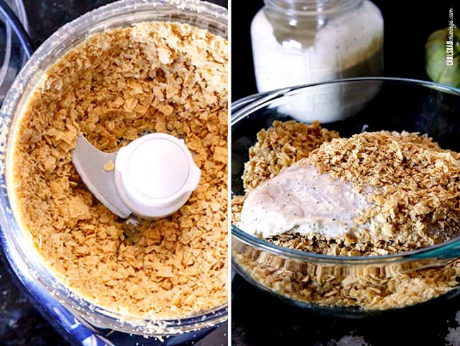To make this exclaimย worthy chicken, you first marinate the chicken in some of the 5 Minute Blender Tomatillo Avocado Ranch.ย Next, coat chicken in crushed, spiced tortilla chipsโฆ