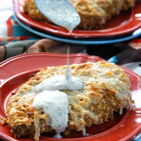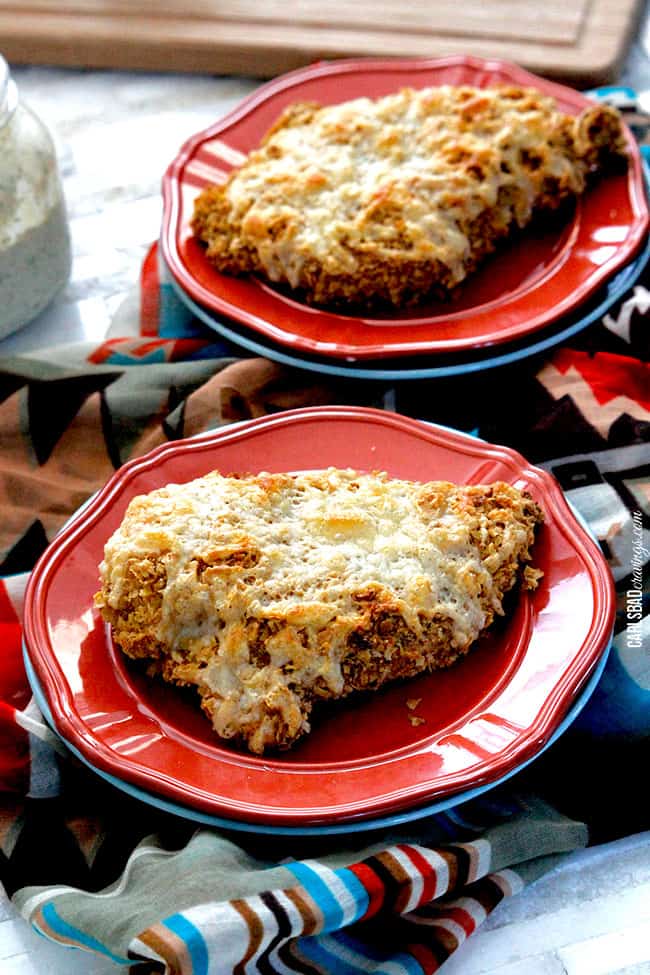 Chips, cheese, tomatillos, avocados, jalapenos, ranch โ there is just so much to love about this chicken! ย It reminds me of a Mexican country fried chicken (except that its baked) with both crunchy and creamy inย every savoryย bite. ย Every time I make this smothered chicken, I continuously exclaim toย to myself ย how amazing it is. ย But now, Iโm excited to share with YOU how amazing it is.
