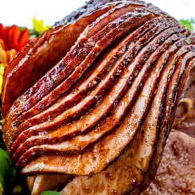 This pineapple glazed ham makes a beautiful centerpiece for any special occasion including Easter, Thanksgiving and Christmas! ย Itโs wonderfully juicy and bursting with flavor from the intoxicating caramelized pineapple ham glaze. To top it all off, this spiral ham with brown sugar pineapple ham glaze is super easy to make, just simmer the pineapple glaze ingredients together, slather it all over the spiral ham and bake!ย