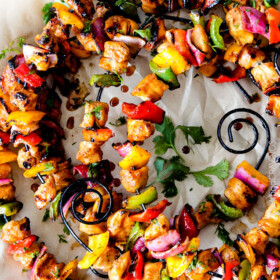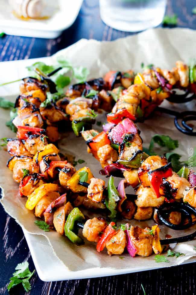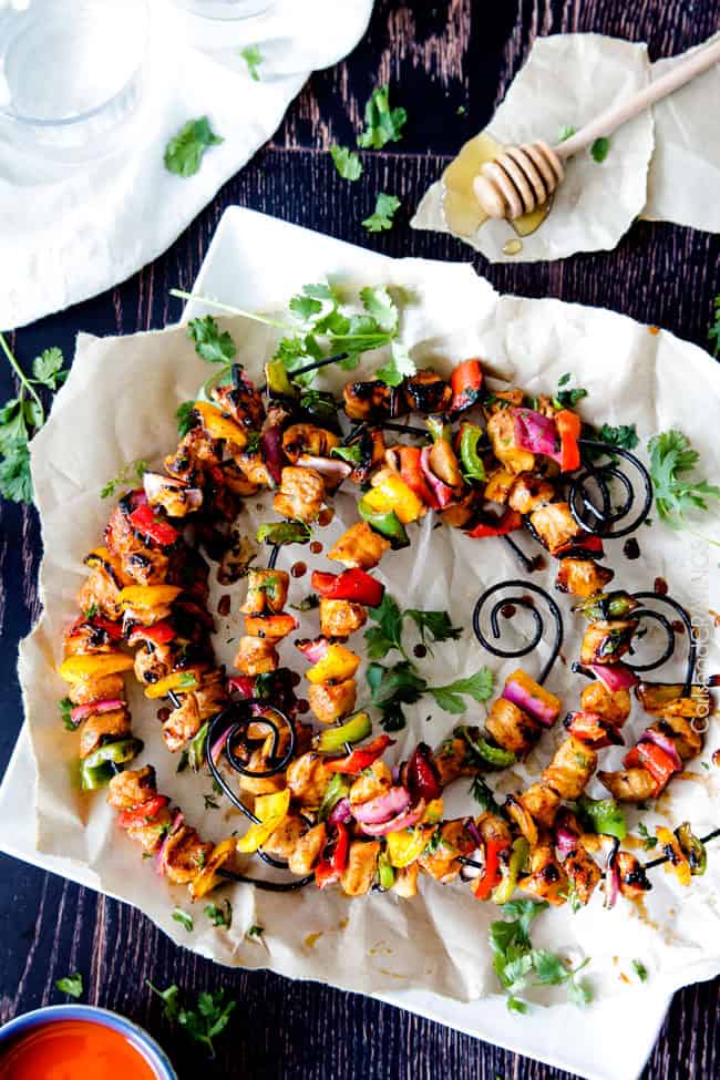 Sticky, sweet and spicy Honey Buffalo Chicken Fajita Kebabs marinated and doused in the most tantalizing sweet heat sauce that you will love forever and ever and ever.