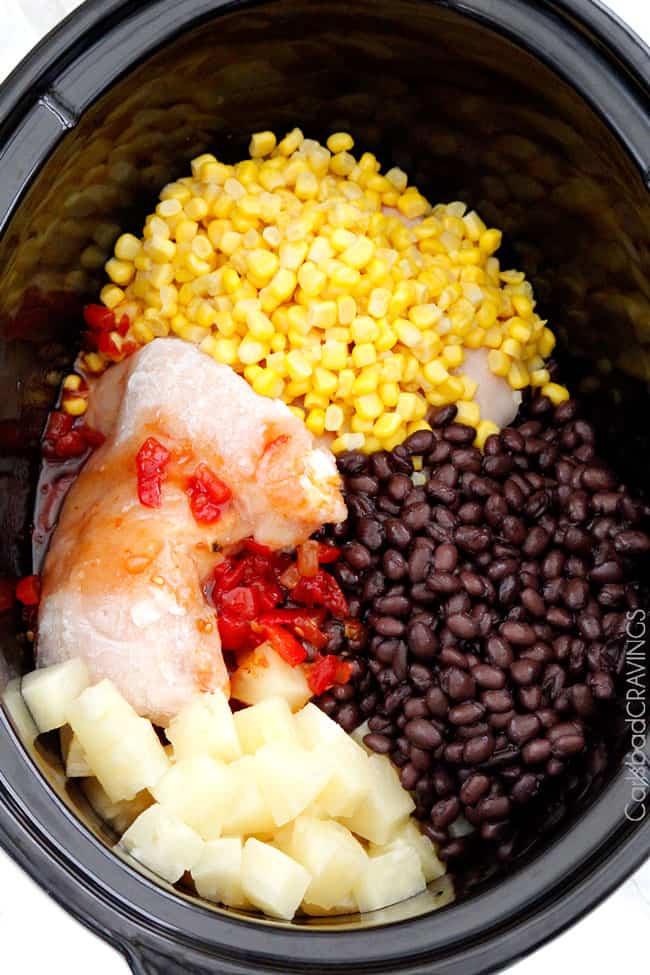 I made this last night (but I also added a can of mango chunks, which kind of melted in the crock pot, but gave this WAY more flavor), and my boyfriend said it was so good he wanted me to make it every night! Thank you for this amazing recipe!