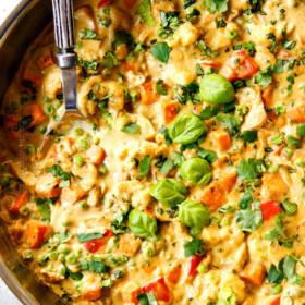 This Thai Green Curry is nothing short of restaurant-quality made with 100% pantry friendly ingredients all in ONE skillet! Readers agree it is: โIncredible!โ โLove love love โค๏ธ,โ โCreamy & dreamy!โ and โA big hit! Even my picky eater 8-year-old loved it.โย With expert tips and easy-to-follow instructions, this recipe ensures youโll achieve a flawless, flavorful curry every time in just over 40 minutes!