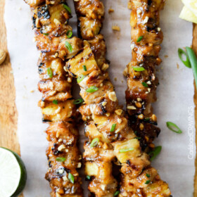 This Pineapple Peanut Satay Chicken recipe is an explosion of flavor in ever bite created by one sauce that doubles as the marinade (no double work!)ย This Satay Chicken can be grilled or oven broiledย so you can love this explosion of flavor all year round!