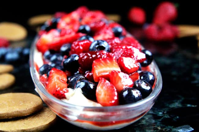 d) Itโs actually better chilled. ย Love this fact because you can prepare the entire dessert beforehand for company or when you know you have a busy day ahead and simply pull out of the refrigerator, add the berries and serve!