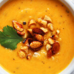 This Curried Butternut Squash Soup is MEGA creamy without any heavy cream, mega healthy and mega flavorful! It is infused with red curry, ginger, garlic coconut milk, and