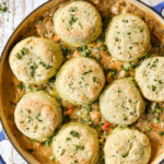 This chicken pot pie with biscuits is extremely make ahead friendly. You can make the biscuits and make the filling in advance and store them separately. *Do not assemble the whole pie and bake the next day because the filling will take longer to warm than the biscuits will to bake. Instead, warm the filling then top with biscuits: