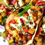 Chili Lime Chicken Tacos seeping with a rainbow of chili lime spices, topped with oozing Jack cheese, sweet and smoky Grilled Pineapple Salsa and drizzled with silky Avocado Crema. Holiday worthy. Every day easy.