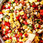 This Corn Salsa Recipe is a MUST MAKE recipe this season! It’s tangy, salty, sweet, spicy, smoky, fresh, juicy, and crunchy all at the same time. This Corn Salsa is made with charred, caramelized sweet corn, crispy bell peppers, crunchy cucumbers, juicy tomatoes, spicy jalapenos, kickin’ garlic and zesty cilantro all brightened by fresh lime juice. This Corn Salsa recipe can be served as an appetizer with just chips at any potluck or pile it on tacos, quesadillas, grilled chicken, salmon, and pork. It also makes a fabulous side to practically everything because it is delicious with just a fork! No matter how you serve this Corn Salsa recipe, you will be blown away at just how fabulous it is!