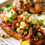 In a small bowl, whisk chicken rub ingredients together and rub evenly all over chicken breasts. Timer permitting, allow chicken to sit for 30 minutes at room temperature or refrigerate up to 8 hours then bring to room temperature for before cooking.* Prepare Avocado Salsa during this time (instructions below).