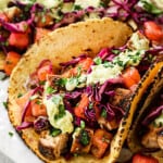 Marinate Chicken: Line the chicken in a single layer in a snug dish. In a small bowl, whisk the marinade ingredients together then pour over the chicken. Turn the chicken to evenly coat. Allow the chicken to marinate while you prep the Pineapple Slaw and Crema (up to 40 minutes at room temperature) or cover and refrigerate up to 12 hours, then bring to room temperature for before cooking.
