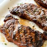 - Kosher salt: is a must for steaks because it aids in dry brining because its large texture doesn’t clump like table salt. I recommend Diamond Crystal brand kosher salt. Table salt is twice as concentrated and will make the steak too salty.