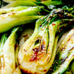 Bok choy glazed in a heavenly sesame, soy, garlic ginger coating - on your table in 10 minutes! Bok choy is a simple, healthy, quick dinner side that is extremely versatile and the answer to all your side dish woes. It’s made with minimal effort but HUGE flavor from a simple sauce of soy sauce, rice vinegar,