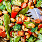 This easy Chicken Stir fry recipe is better than your favorite takeout and heather too! It’s a QUICK one-skillet dinner loaded with tender chicken, garlic ginger stir fry sauce, tender-crisp veggies and crunchy peanuts or cashews. This Chicken Stir Fry recipe utilizes the easy restaurant velveting technique to produce smooth, tender, melt-in-your-mouth chicken you will have to taste to believe! Now get giddy for a wonderfully versatile, filling, healthy and satisfyingly delicious go-to chicken stir fry!