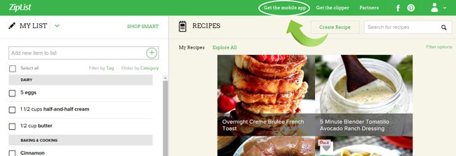 You can get the mobile app at the top of your ZipList toolbar in your Recipe Box.