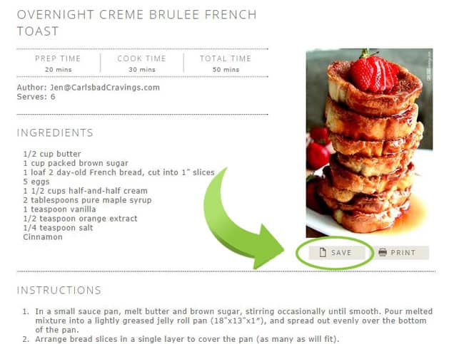 To save a recipe, simply scroll down to the bottom of the post to the recipe and click โSAVEโ